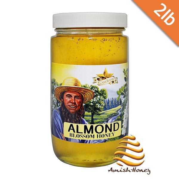 almond blossom honey produced in the U.S, sourced from the blossoms on the