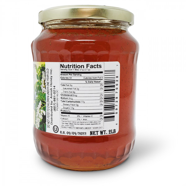 There are over 300 species of the clover plant, some are more known and used for honey production like the alsike clover, red clover, crimson clover and the white clover which is the very common type in the United States. Depending on where it is harvested and source, Clover honey varies in color from water-white tending towards extra light amber and has a mild, delicate sweet flavor that lingers in the mouth. Raw clover honey has been said to have antidiarrheal, diuretic and expectorant properties among others. Use to sweeten your tea in place of sugar to increase the therapeutic effect.